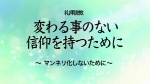 変わる事のない信仰を持つために ~マンネリ化しないために~